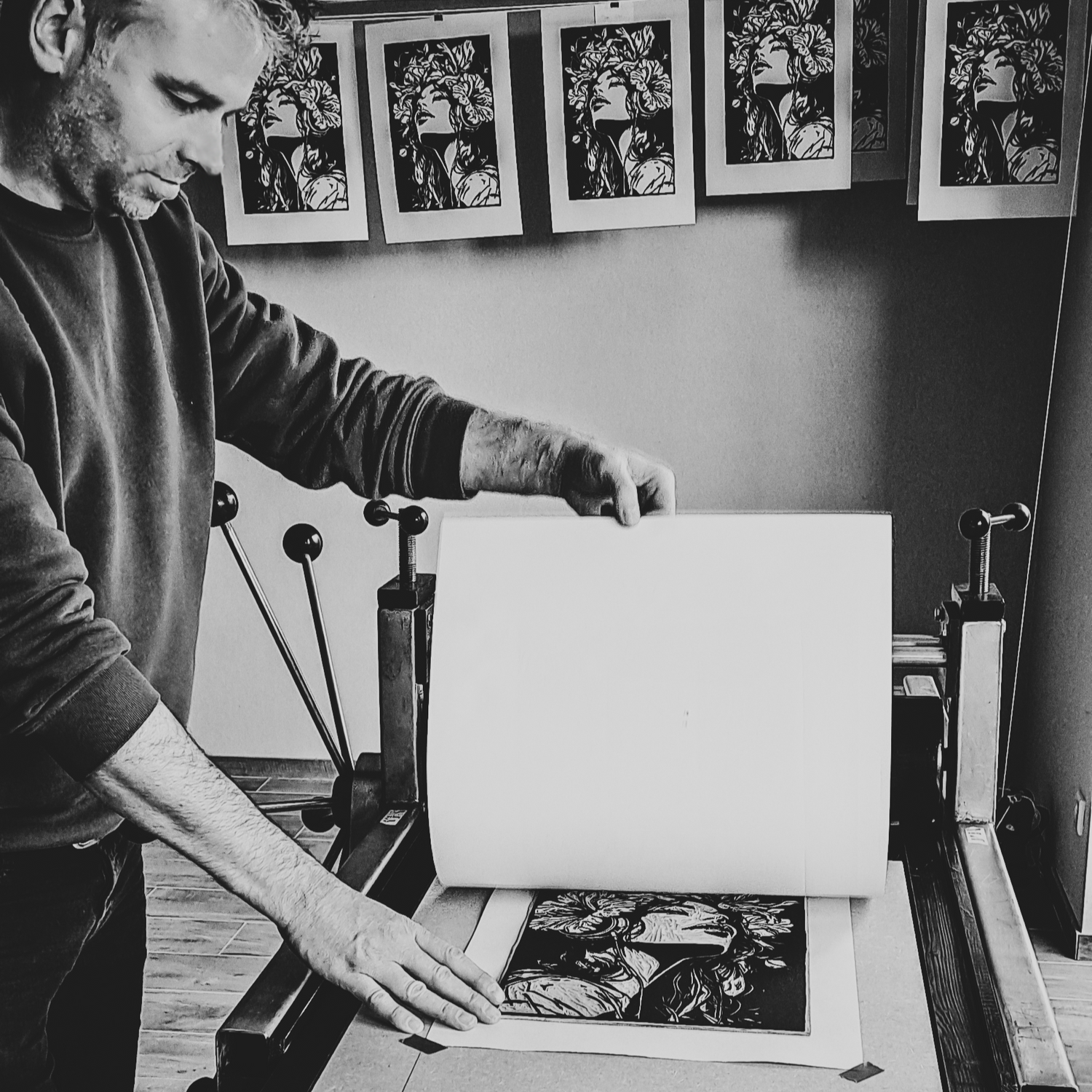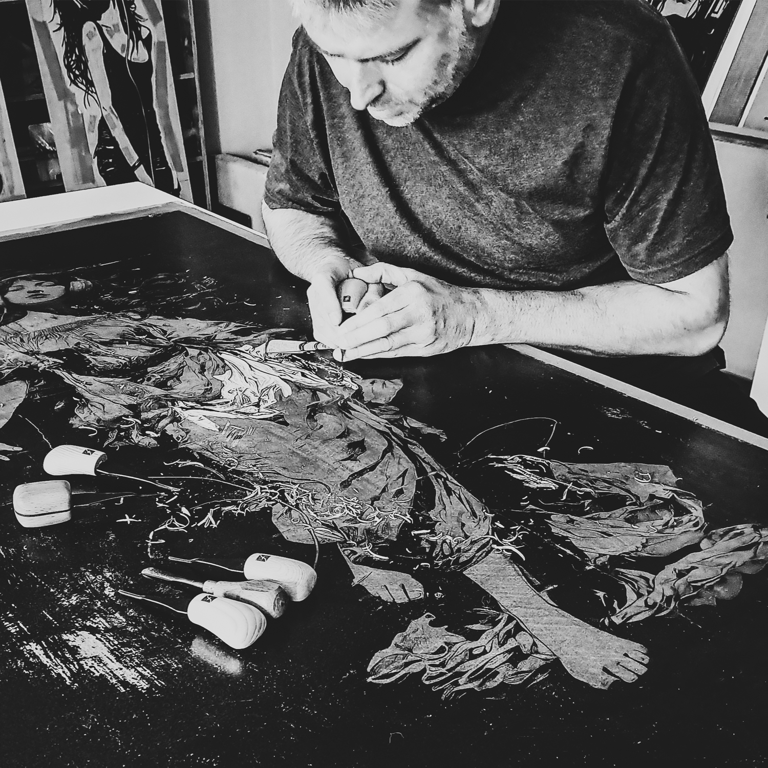 I work within a traditional graphic discipline where time is not a limitation, but a prerequisite. Each line is physically carved, and each print is carefully hand-pulled. The process demands concentration, calm, and patience to let an image emerge step by step. Subtle variations, irregularities, and traces of the making are integral to the work and give it character.
