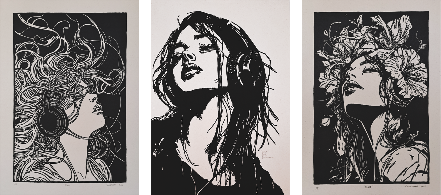 Elke lijn, afdruk en afwerking ontstaat met de hand, met aandacht, geduld en precisie. Je ziet het in de subtiele variaties die elk werk uniek maken. Niet alleen het eindresultaat telt, maar ook de sporen van het maakproces zelf.